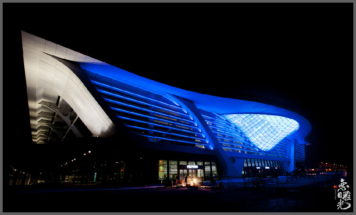 在夜晚降臨時,白天的水滴造型,承載著悠久燦爛的文化,在夜晚滴入銀河,喚醒了都市,開啟了城市的眼睛,開啟光明的眼睛,開啟未來的眼睛。