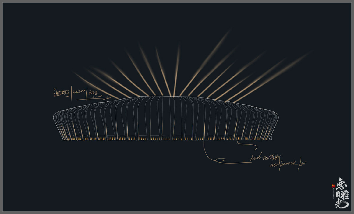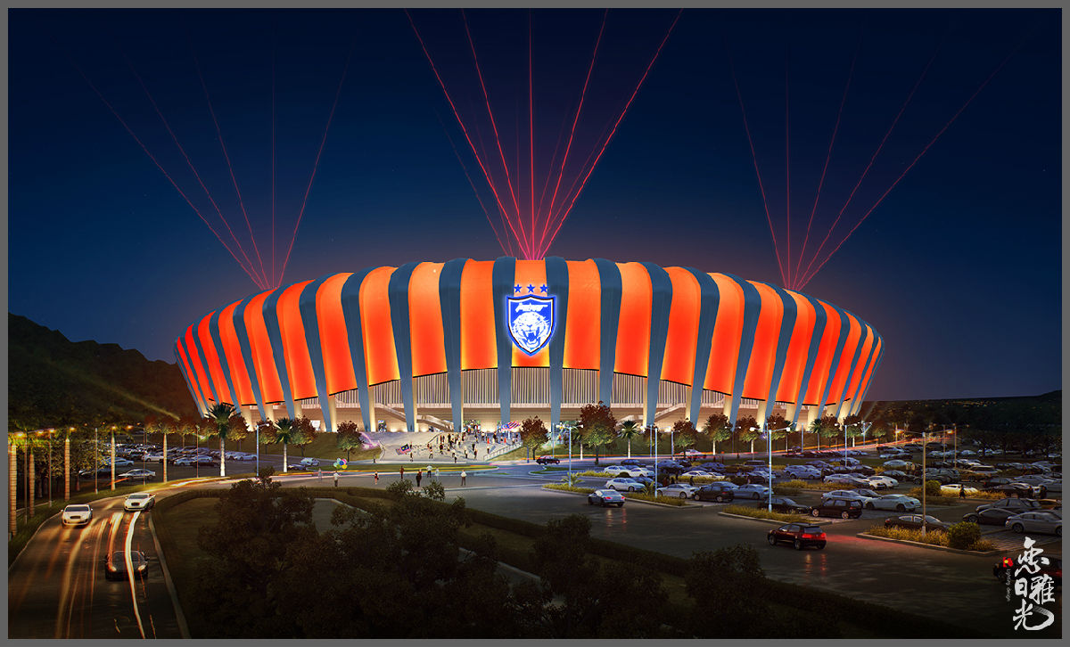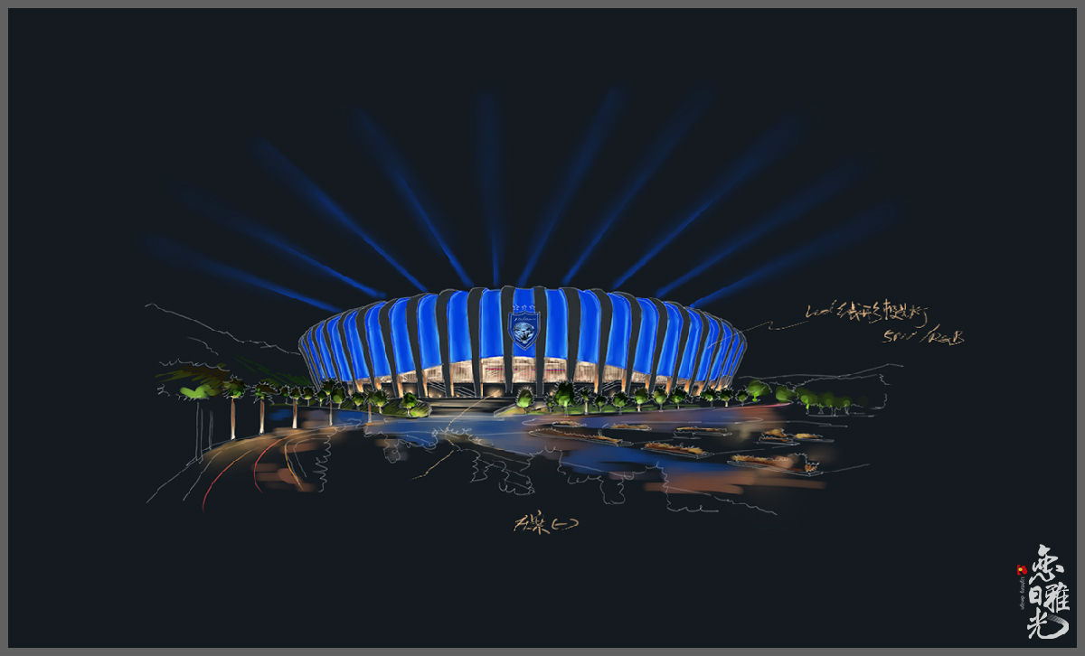 本項(xiàng)目設(shè)計(jì)以球隊(duì)球衣顏色紅、藍(lán)色為元素,在夜間為主場(chǎng)館形成強(qiáng)烈的運(yùn)動(dòng)、活力氛圍。紅色,代表著熱情奔放,開(kāi)拓奮進(jìn)的體