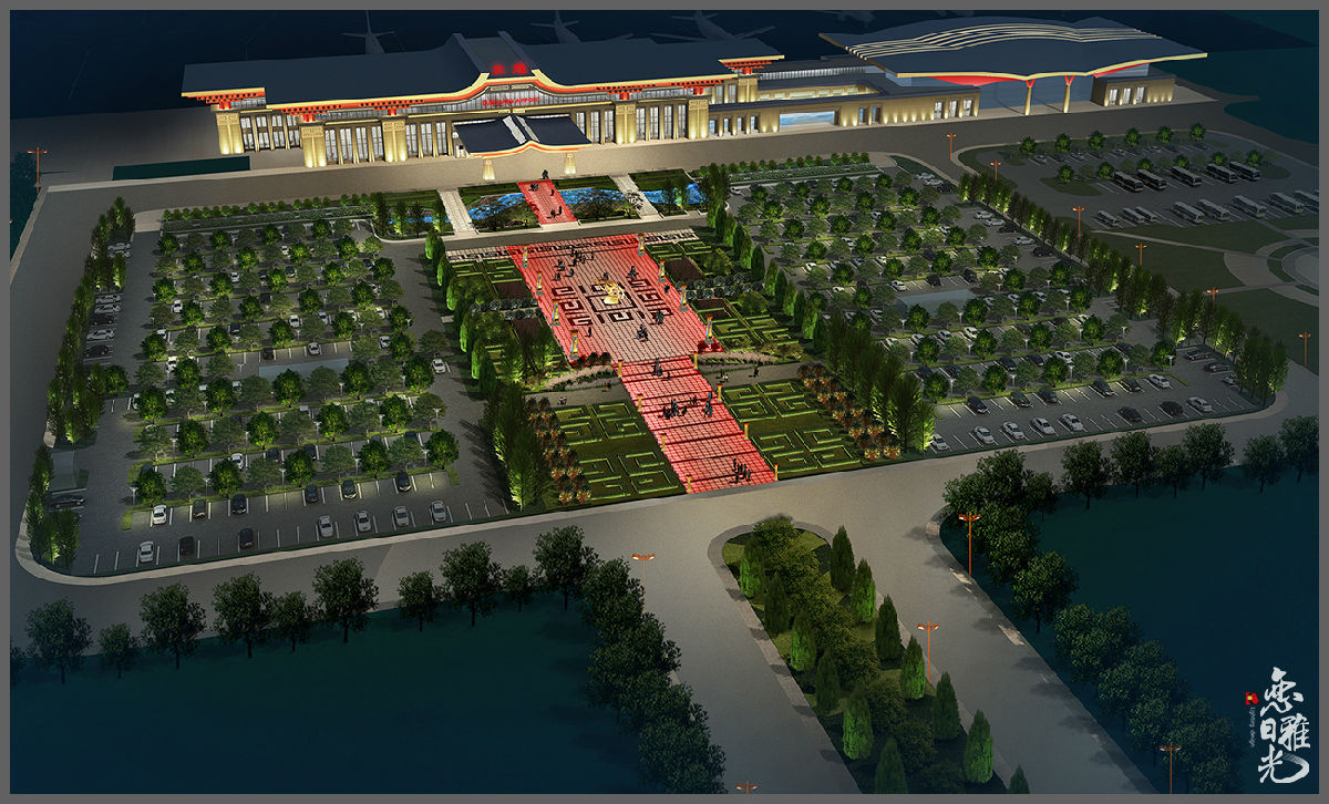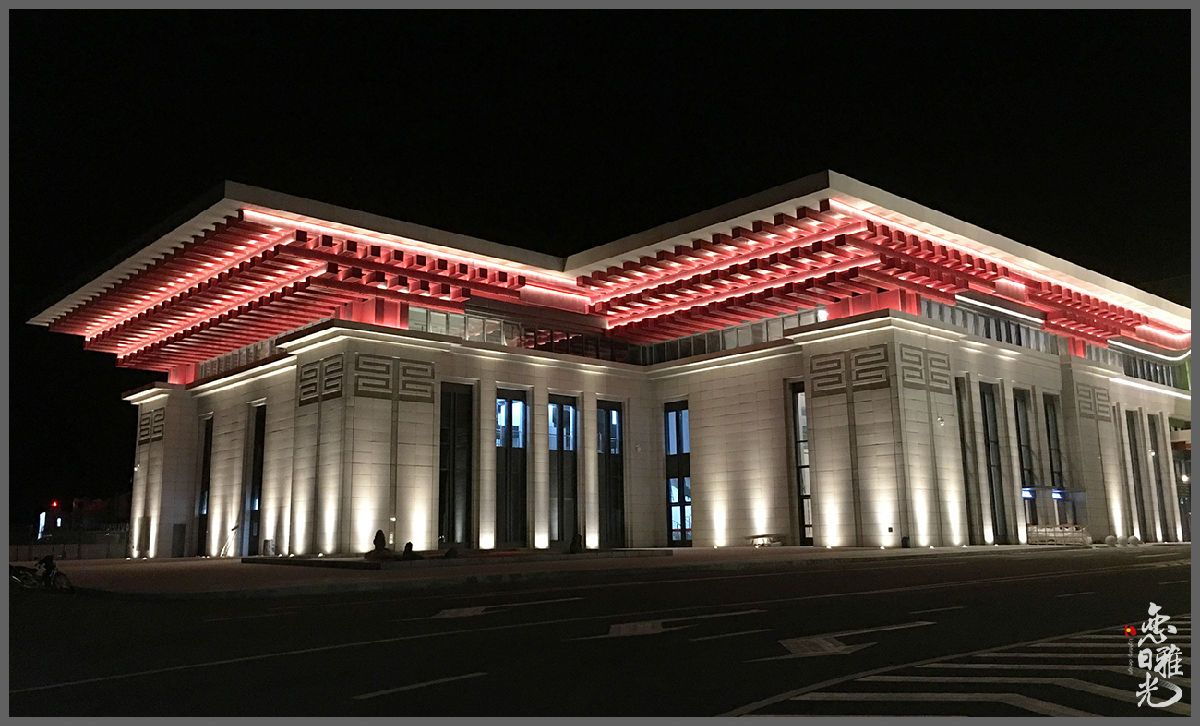 共同實(shí)現(xiàn)偉大的中國(guó)夢(mèng)!建筑頂部延續(xù)著漢唐建筑頂部結(jié)構(gòu)紋理,連綿起伏,采用大功率LED投光燈開(kāi)放地詮釋著歷史印記,承載著