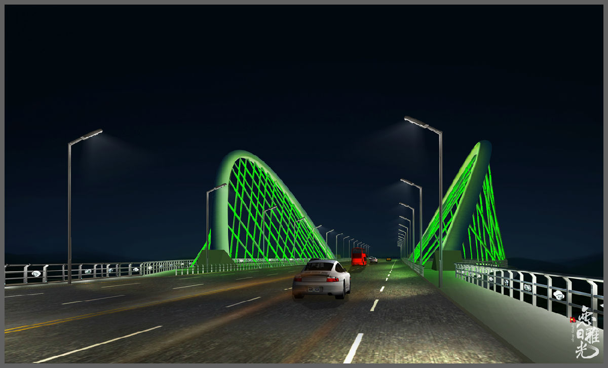 的方式把金沙溪大橋照明主題定義為“青山、玉水”,通過燈光的藝術(shù)與技術(shù)結(jié)合,演繹一幅自然山水的燈光畫卷。