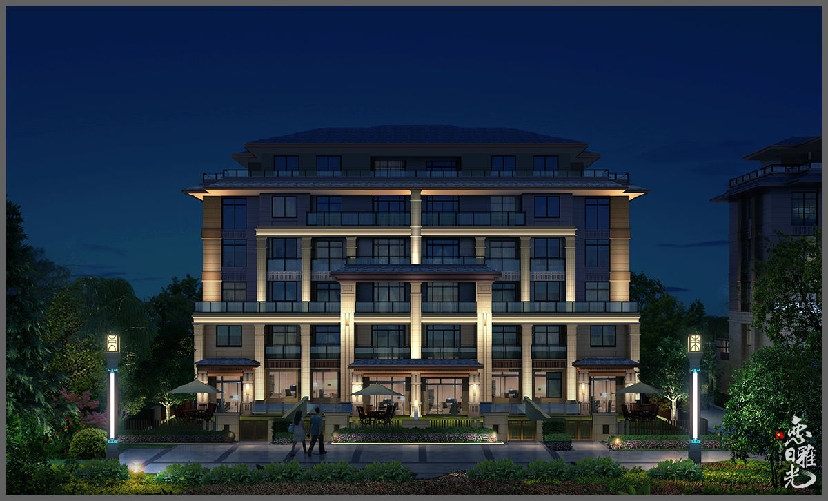 風(fēng)。本次設(shè)計從遠(yuǎn)中近3個視線尺度來表達(dá)凸顯建筑高度,增強(qiáng)遠(yuǎn)觀辨識感。表達(dá)建筑形態(tài)氣質(zhì),強(qiáng)調(diào)體量感。展現(xiàn)建筑結(jié)構(gòu)細(xì)節(jié)及景觀