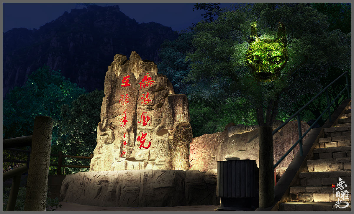 路提供足夠的安全照度,功能照明來滿足夜間登山游覽的照明需求。其次以人為本,通過燈光將人與石林峽聯(lián)系起來,打造夜晚視覺盛